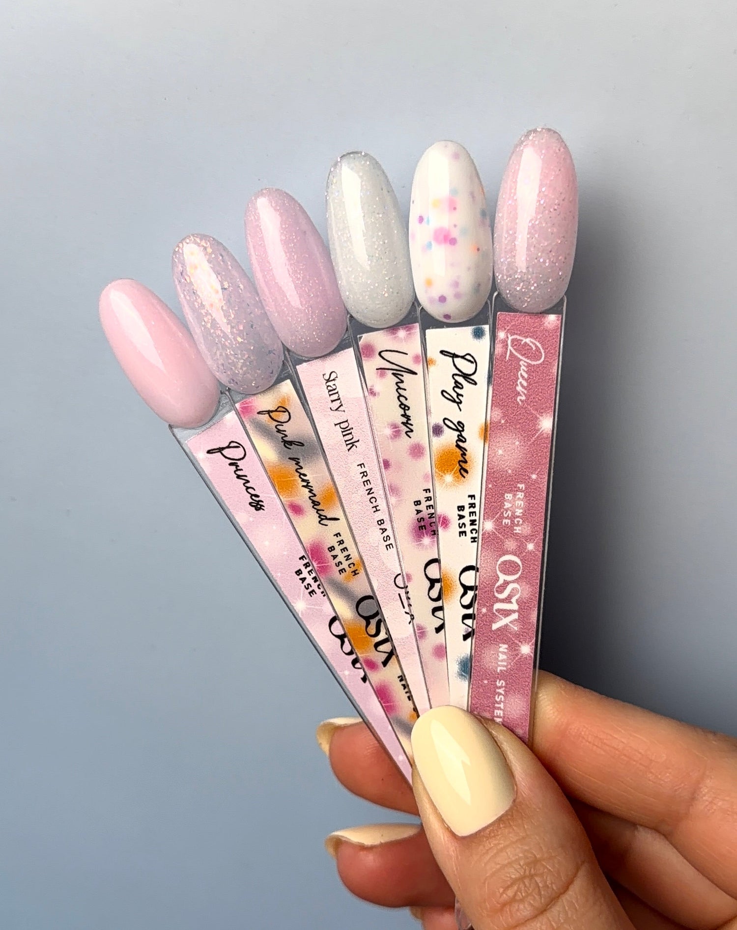 5. Lakuokite plonai ar storiau OSIX French Starry pink base ir džiovinkite lempoje 30-60sec CCFL/LED.